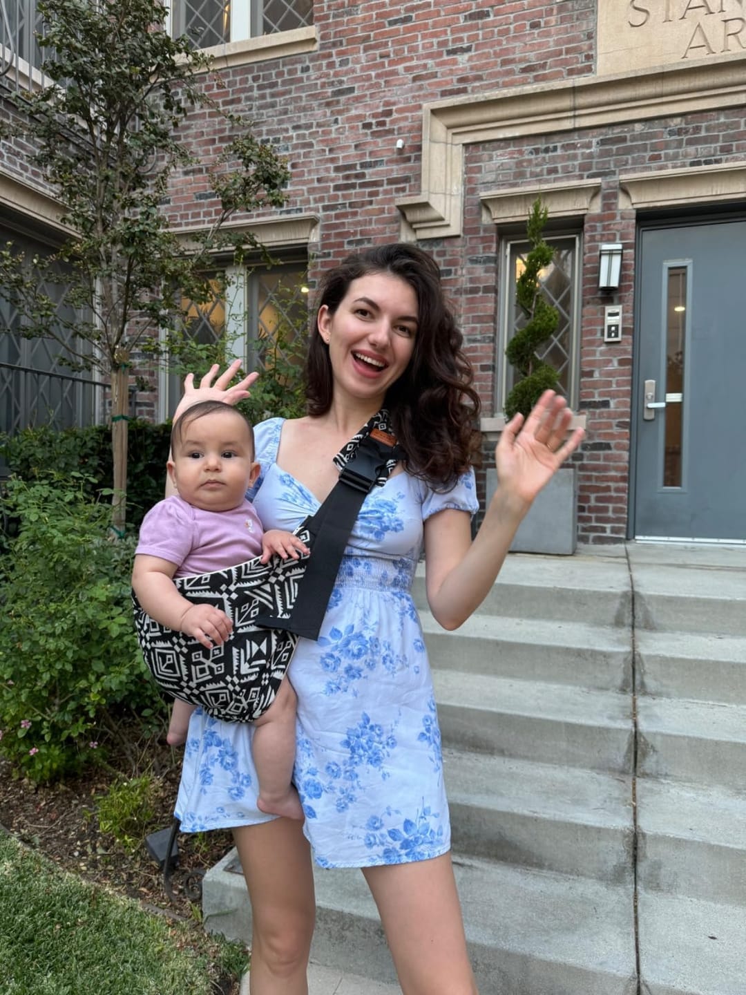 "Avete BISOGNO di questa fascia! La uso per fare le commissioni, in giro per casa e l'altra sera ci ho persino preparato la cena con la piccola addosso. Non scivola mai, non devo stare a risistemarla ogni 5 secondi e a lei piace un sacco starci dentro. La consiglio vivamente se avete un 'bimbo koala' e la vostra schiena sta chiedendo pietà!"
